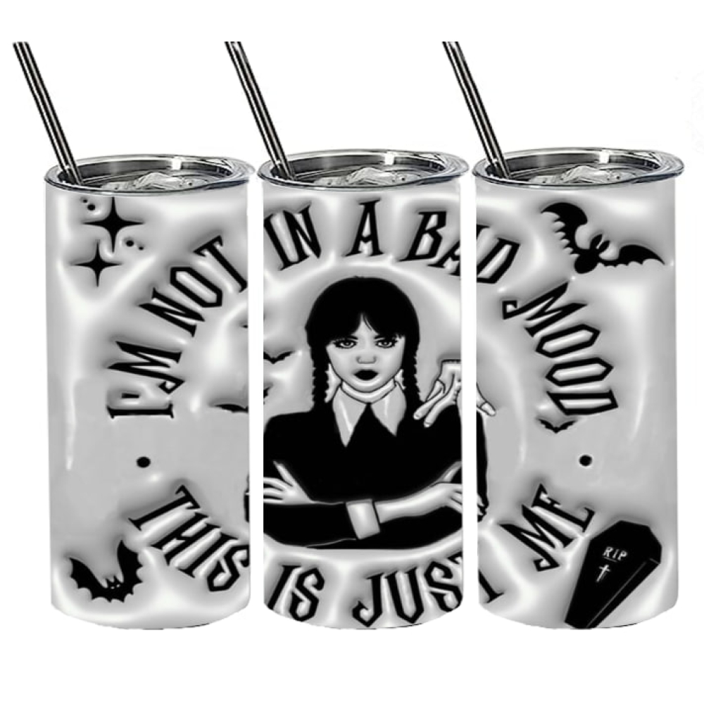 Deze drinkles is gemaakt van roestvrij staal met een prachtige Wednesday Addams 3D print rondom.
