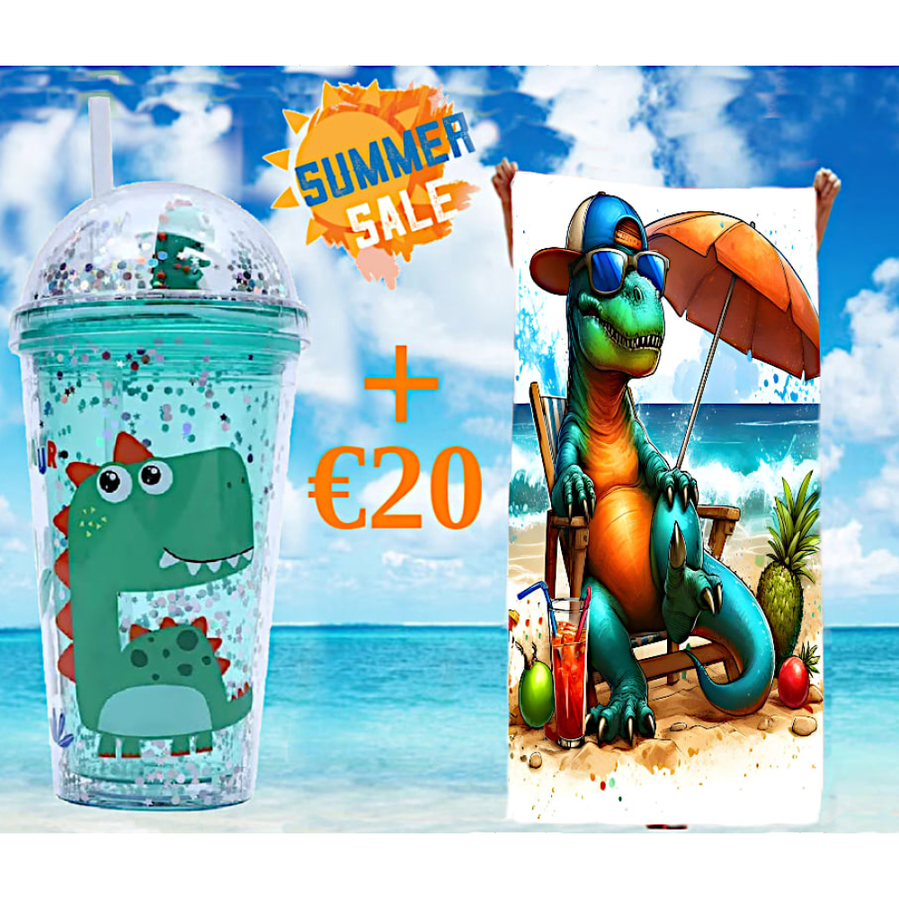 Dinosaurus badlaken-strandlaken + 1 Dino drinkbeker! 01