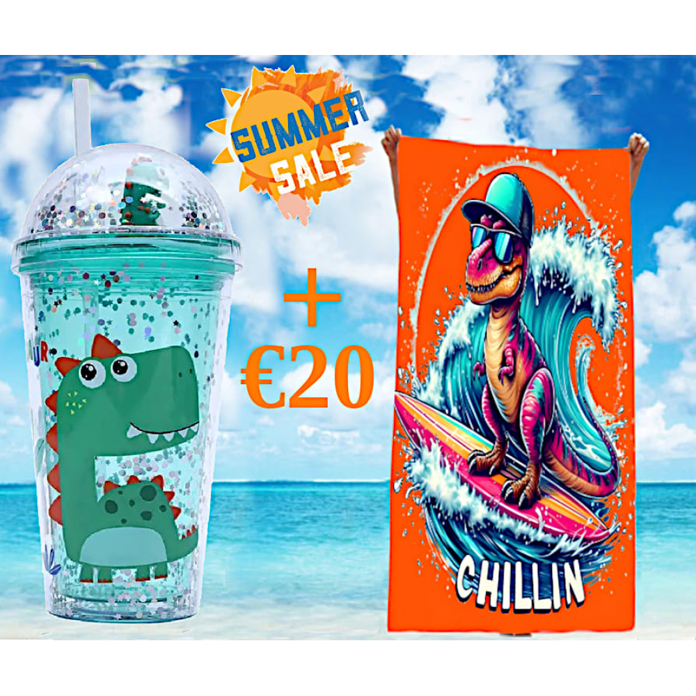 Dinosaurus badlaken-strandlaken + 1 Dino drinkbeker! 02