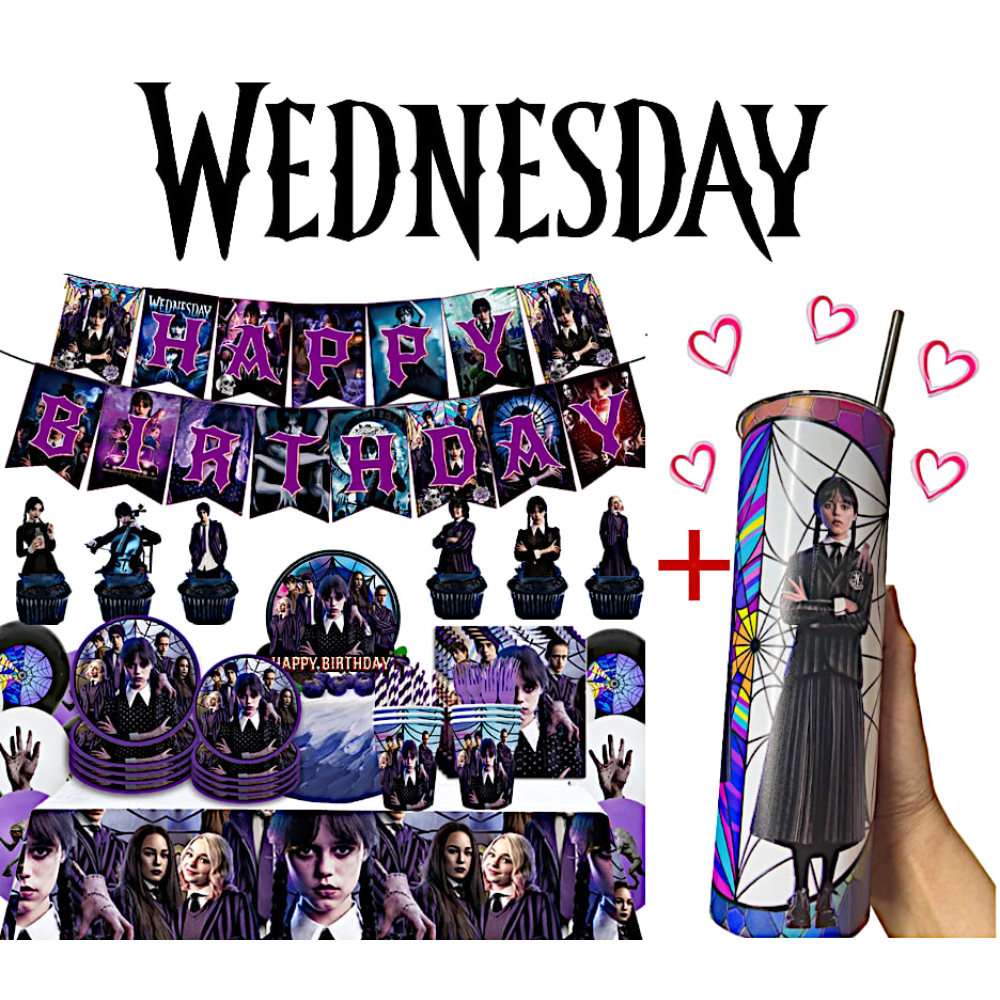 1 INOX drink cup met deksel en rietje + PARTY SET WEDNESDAY