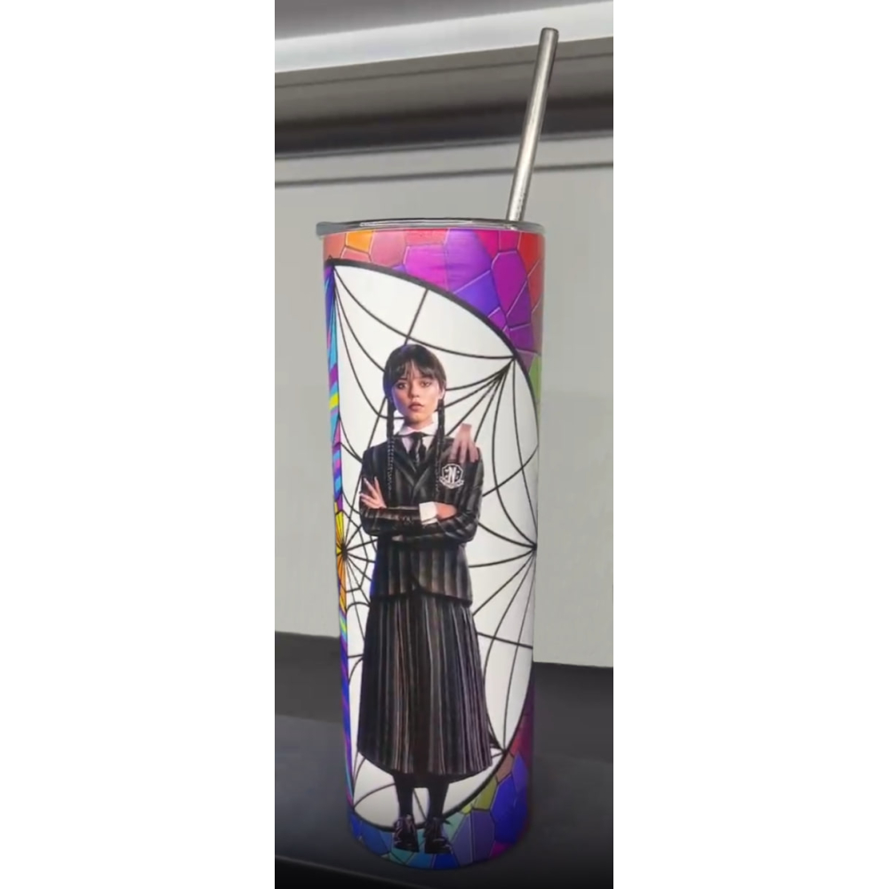 Deze drinkles is gemaakt van roestvrij staal met een prachtige wednesday en Enid print rondom.