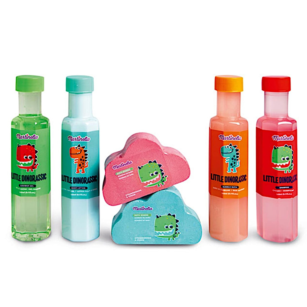 Met de Dino douche & badset van Martinelia wordt baden elke keer weer een echte belevenis voor de allerkleinsten.